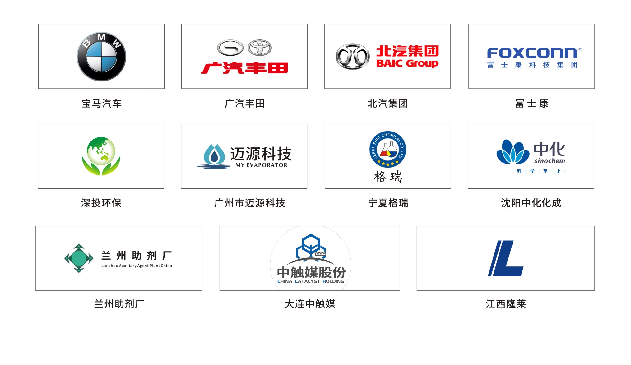 目前,公司已在成都、大連、蘇州、內(nèi)蒙古等地設(shè)立了辦事機構(gòu),服務(wù)的客戶包括深投環(huán)保、寶馬汽車、富士康、廈門嘉戎、寧夏格瑞,蘭州助劑廠、江西隆萊、大連中觸媒等行業(yè)內(nèi)領(lǐng)頭企業(yè),在國內(nèi)落地項目有170多家。
